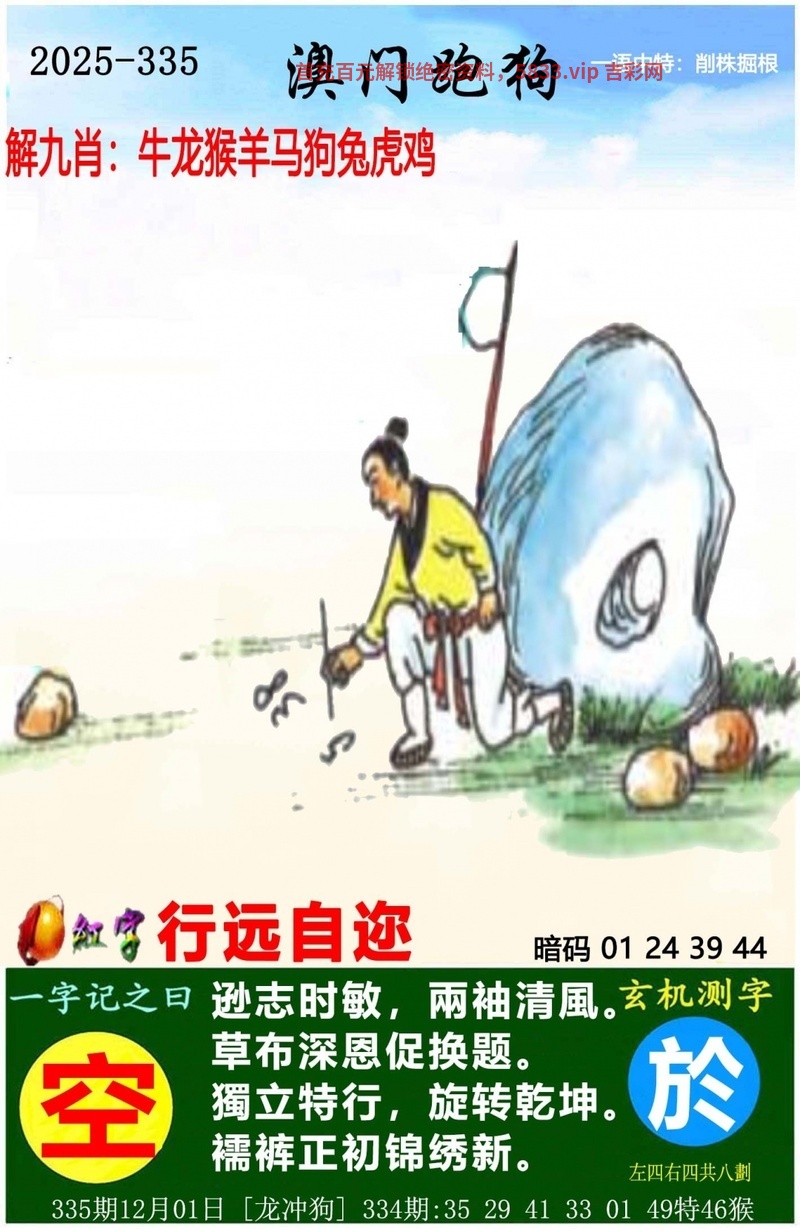 诗句解:图中是一男子靠着大石头在地上写着,大石头解大数特码25-49。男子解男肖的生肖鼠、牛、虎、龙、马、猴、狗。行远自迩指走远路需从近处起步解地肖的生肖鼠、虎、蛇、羊、鸡、狗。